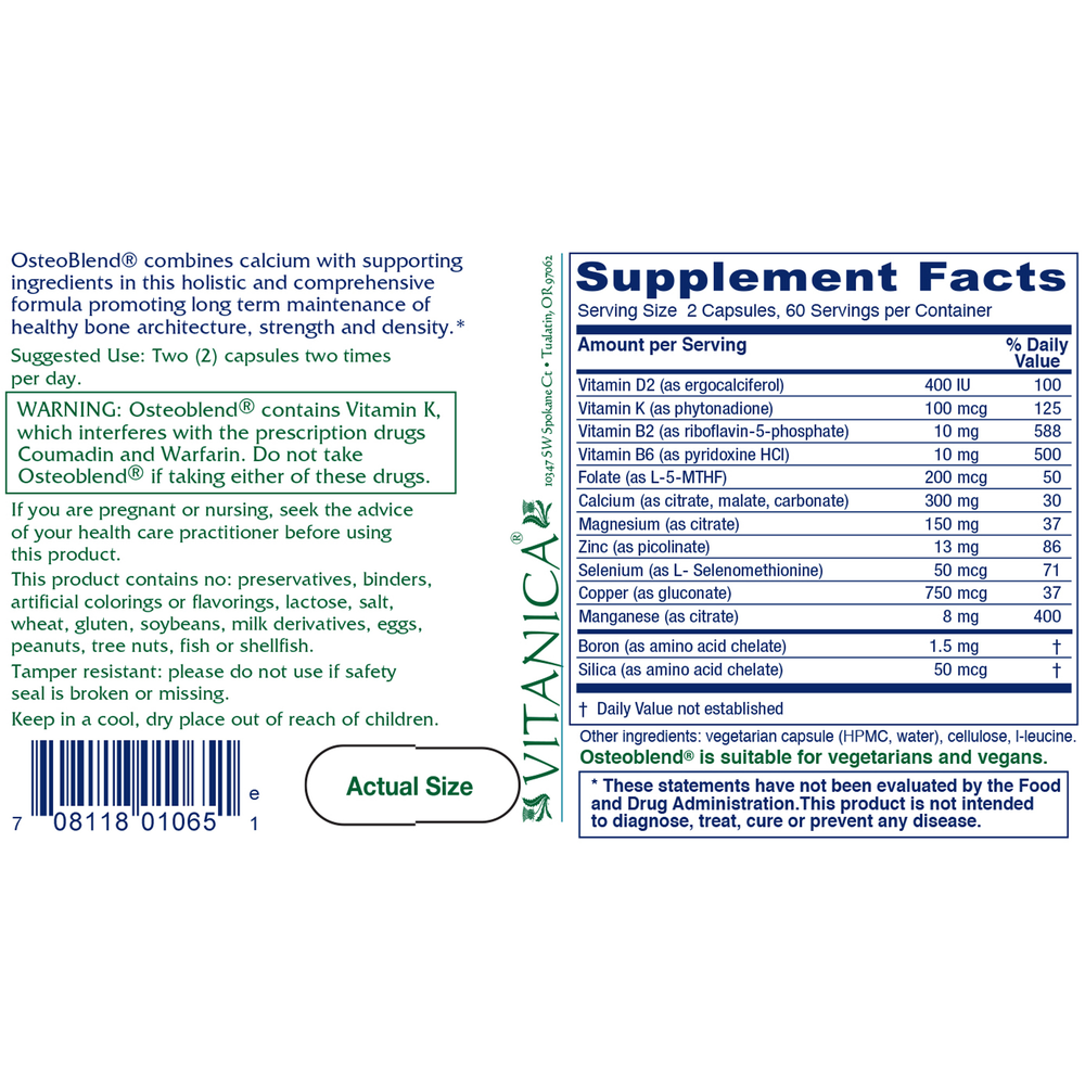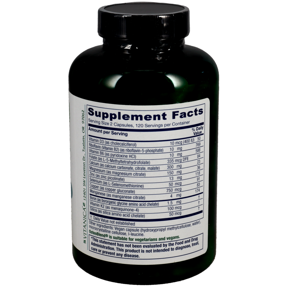 • The amount of Calcium in our formula takes into account a woman’s dietary intake as well as the supplemented amount. In general, we consume 500 mg of calcium from our diet. The 600 mg OsteoBlend provides (at 2 caps twice per day) meets most daily requirements without getting an excessive amount