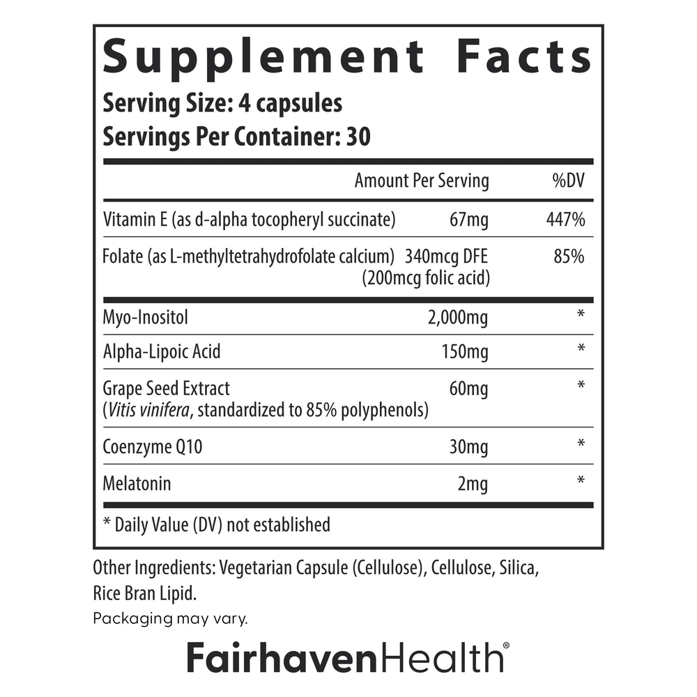 A dietary supplement for healthy women to support egg quality and healthy ovulation, with myo-inositol, folate and melatonin.*