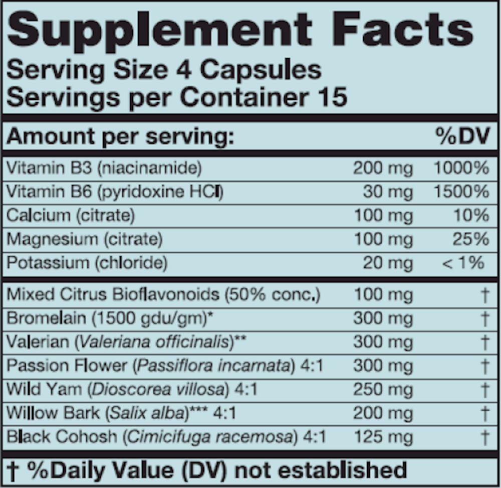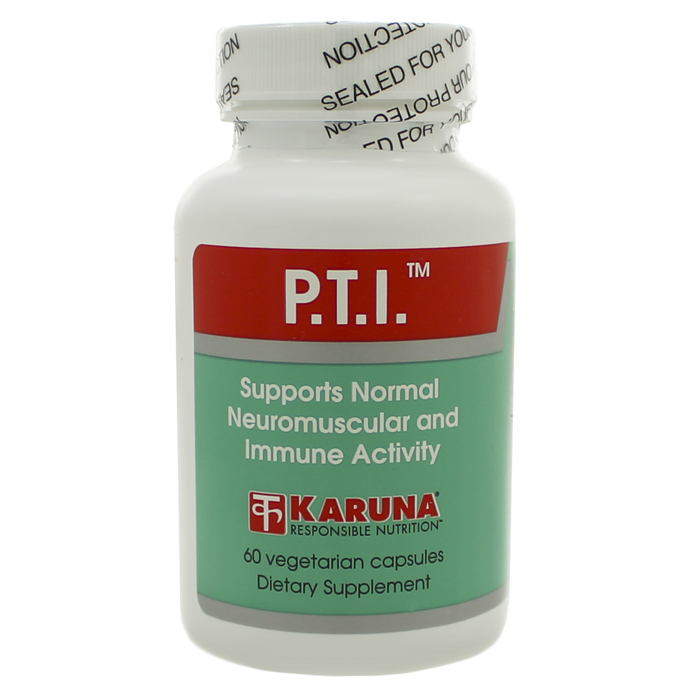 P.T.I. is a high-potency combination designed to support normal neuromuscular and immune activity for short-term use. Neuromuscular stability is supported with valerian, passion flower, and black cohosh concentrates, as well as calcium, magnesium and niacinamide. Immune activity is balanced with bromelain and concentrated willow bark extract. Local blood vessel permeability and fluid balance are regulated with the help of citrus bioflavonoids.* For best results, take on an empty stomach (30 minutes prior to or 2 hours after a meal).