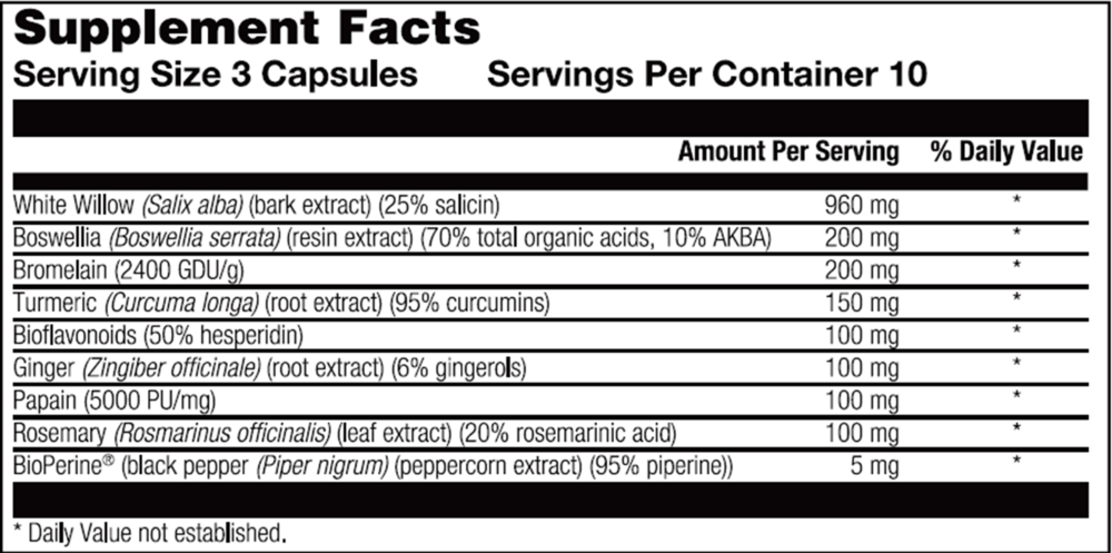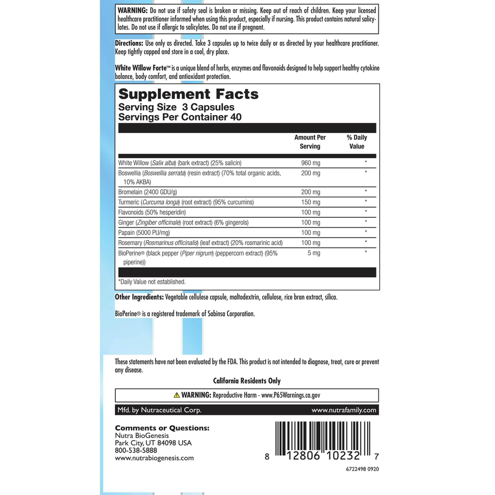 White Willow Forte™ is a unique blend of herbs, enzymes, and bioflavonoids intended to provide nutritive support for body comfort and antioxidant protection.*