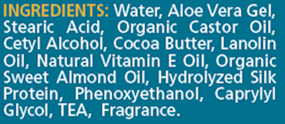 Specially Formulated with Organic Castor Oil, Cocoa Butter, Almond Oil & Aloe Vera