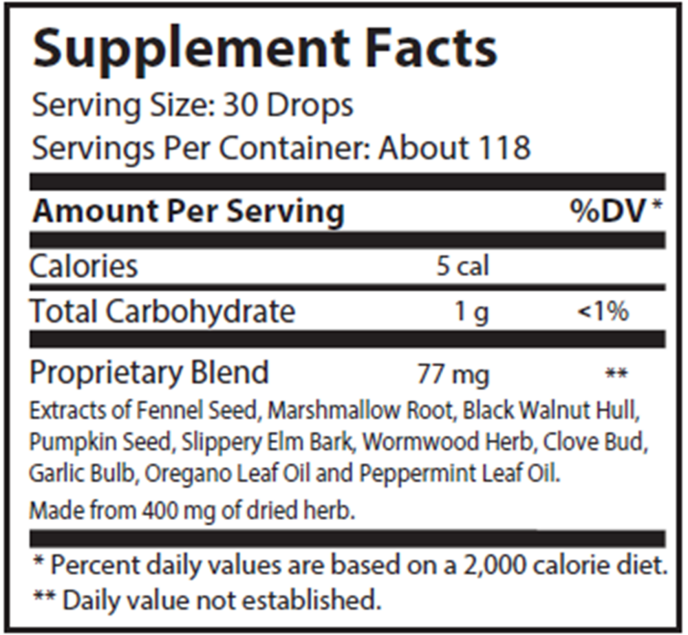 • Contains Wormwood, Pumpkin Seed, Garlic Bulb and more