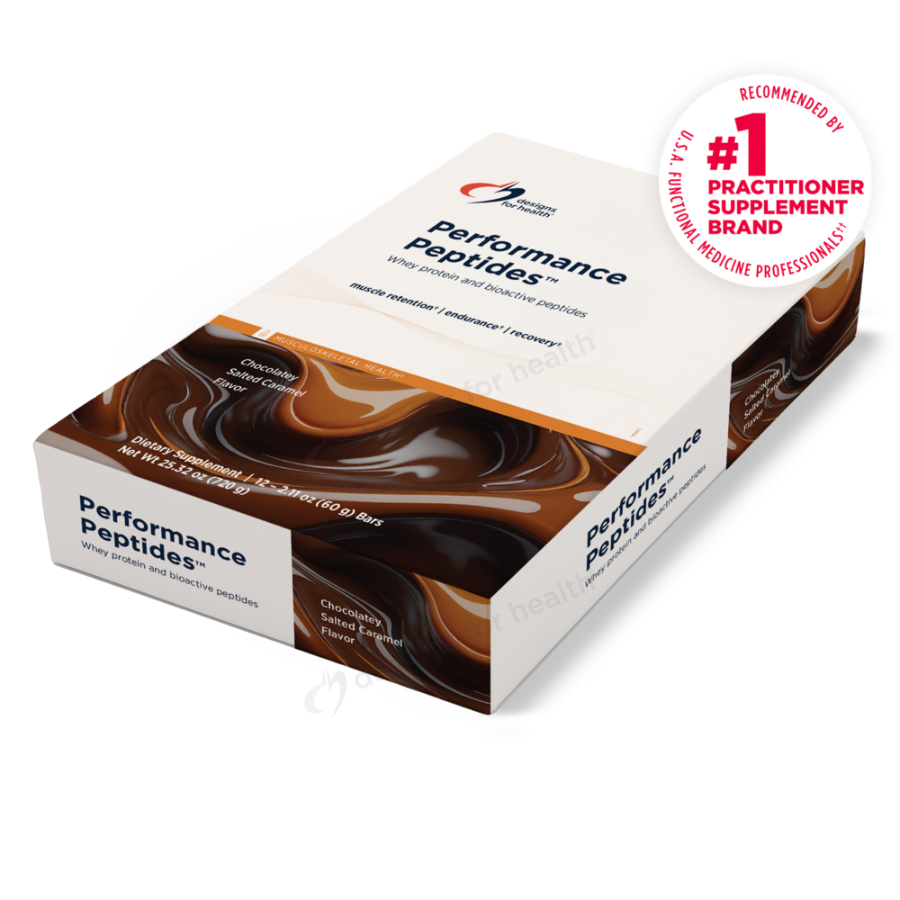 With 15 g protein, 8 g fiber, and just 1 g sugar per bar, the Performance Peptides™ Bar fuels strength and recovery.* Its 2.4 g of PeptiStrong™ bioactive peptides support muscle health, endurance, and performance in athletes, aging men and women, and anyone looking to maintain a healthy body composition.* PeptiStrong™ consists of plant-based peptides from the fava bean (Vicia faba) that act on certain pathways in the body that stimulate muscle protein synthesis – discovered through state-of-the-art lab testing and AI machine learning.* This chocolatey salted caramel-flavored bar also features whey protein for extra protein and muscle retention support.*