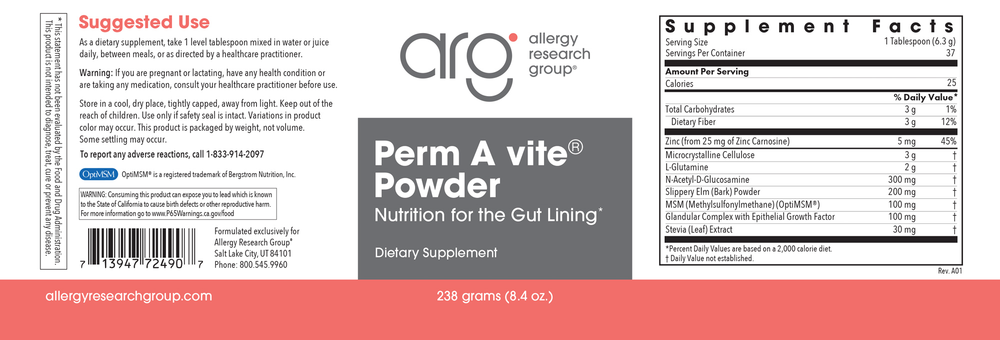 Updated with zinc carnosine and fish-free (vegan) N-acetyl glucosamine. Provides nutrients known to nutritionally support the lining of the gastrointestinal tract.*