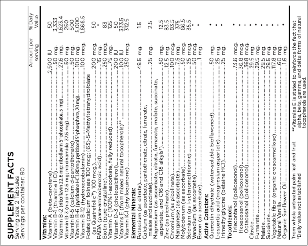 **Vitamins E is stated to reinforce the fact that the alpha, beta, gamma, and delta forms of natural tocopherols is used.