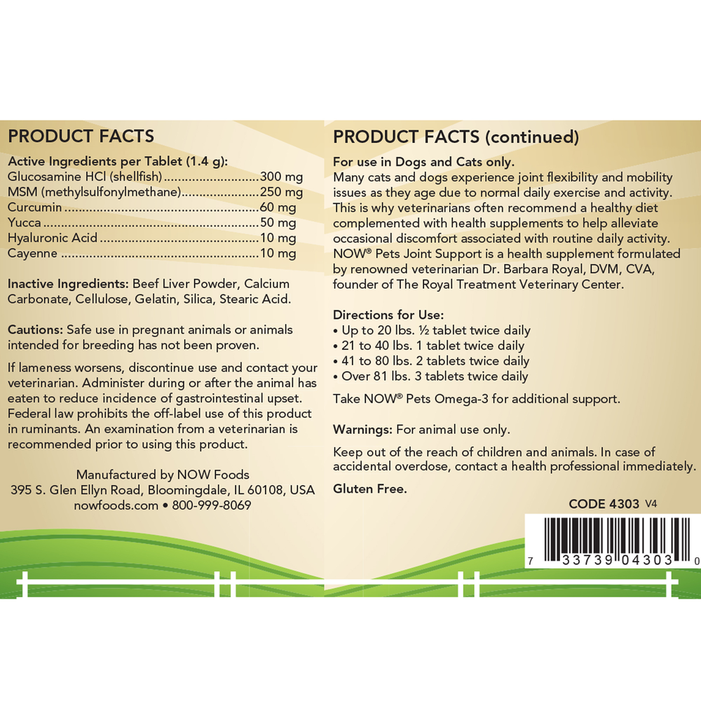 Many cats and dogs experience joint flexibility and mobility issues as they age due to normal daily exercise and activity. This is why veterinarians often recommend a healthy diet complemented with health supplements to help alleviate occasional discomfort associated with routine daily activity. NOW® Pets Joint Support is a health supplement formulated by renowned veterinarian Dr. Barbara Royal, DVM, CVA, founder of The Royal Treatment Veterinary Center.