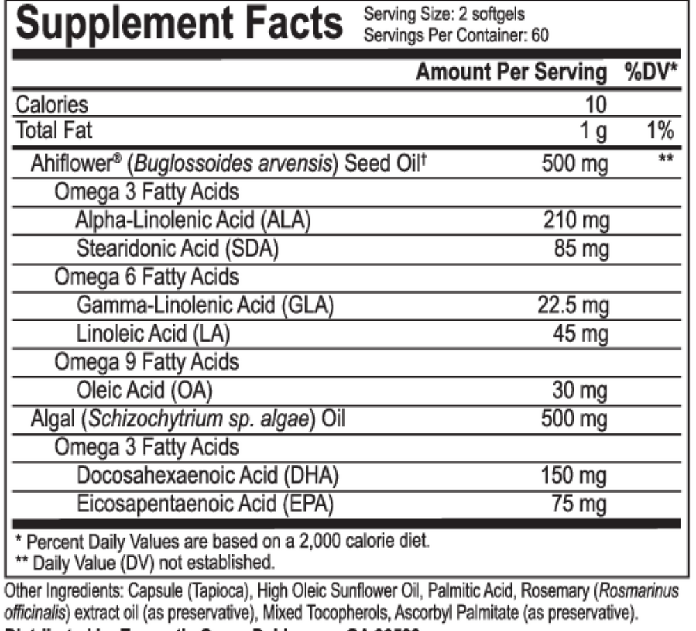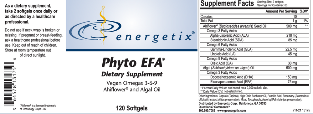 Phyto EFA® is a vegan blend of omega-3, omega-6, and omega-9 fatty acids from Ahiflower® seed oil and algal oil to help maintain normal immune response, heart health, and brain development. This unique combination provides a sustainable, non-GMO source of short and long-chain fatty acids and the two essential fatty acids (EFAs) that support health.