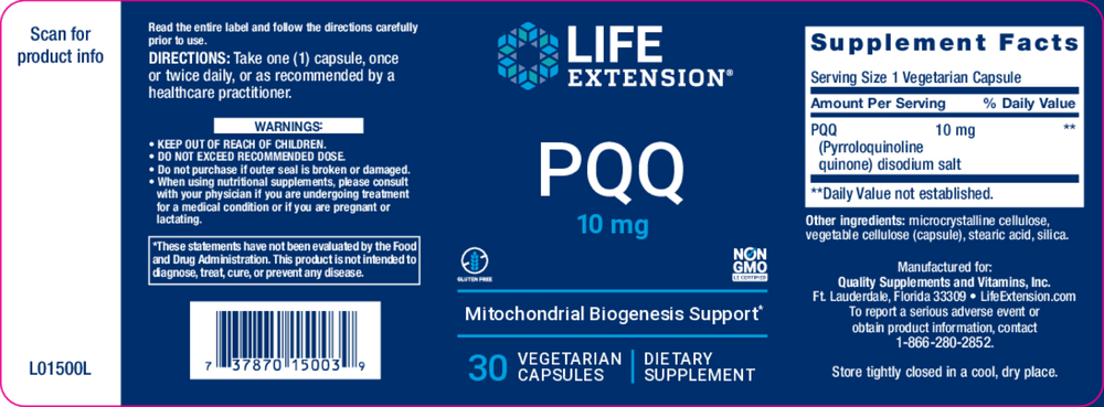 Life Extension's PQQ (pyrroloquinoline quinone) supplement is a powerful antioxidant that supports the growth of brand-new mitochondria, to support cellular energy.