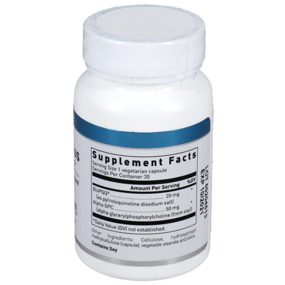 PQQ Plus supplies 20 mg pyrroloquinoline quinone (PQQ), the novel compound that some consider to be a newly discovered vitamin, and 50 mg of alpha glycerylphosphoryl choline (alpha GPC) in each vegetarian capsule for neurological health.*