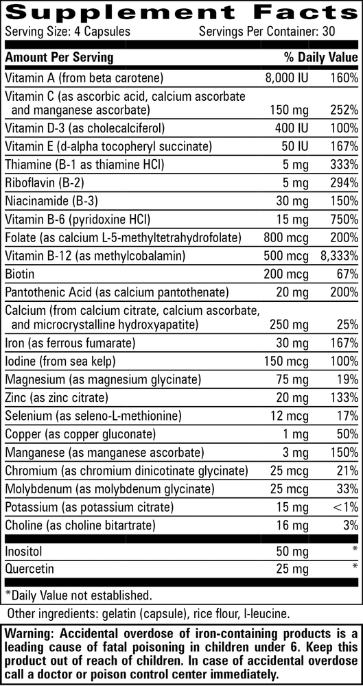 Folate (as calcium L-5-methyltetrahydrofolate) ... 800 mcg