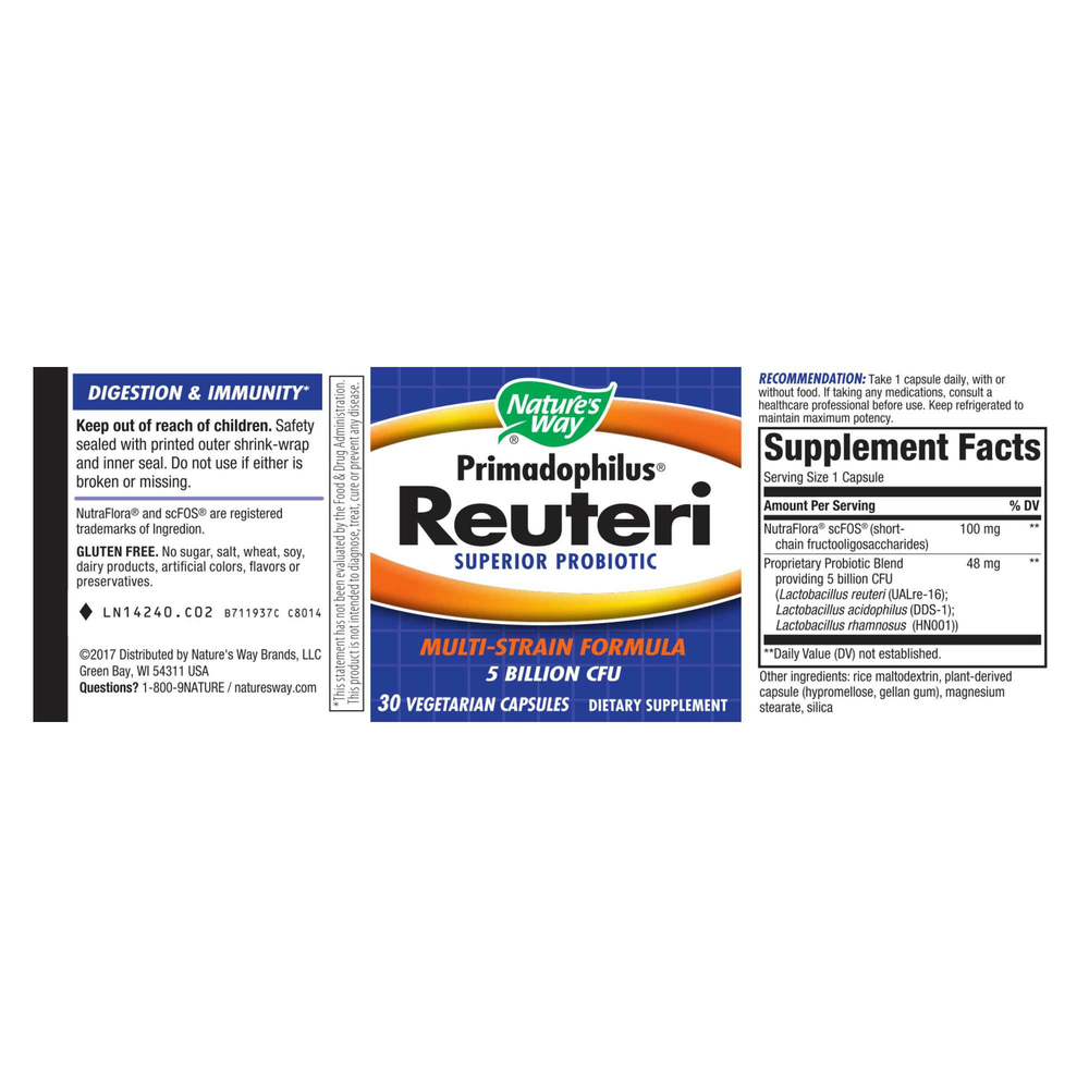 Primadophilus Reuteri is a multistrain probiotic formula with L. reuteri (UALre-16), L. acidophilus and L. rhamnosus that can help: