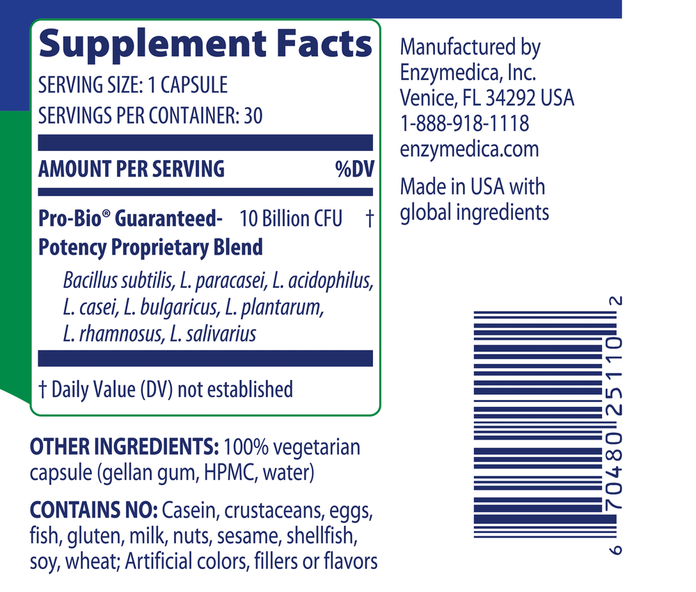 With 8 strains and 10 billion CFUs of noncompetitive, guaranteed potency probiotics, Pro-Bio supports regularity and immune function, along with promoting a flourishing microbiome.*