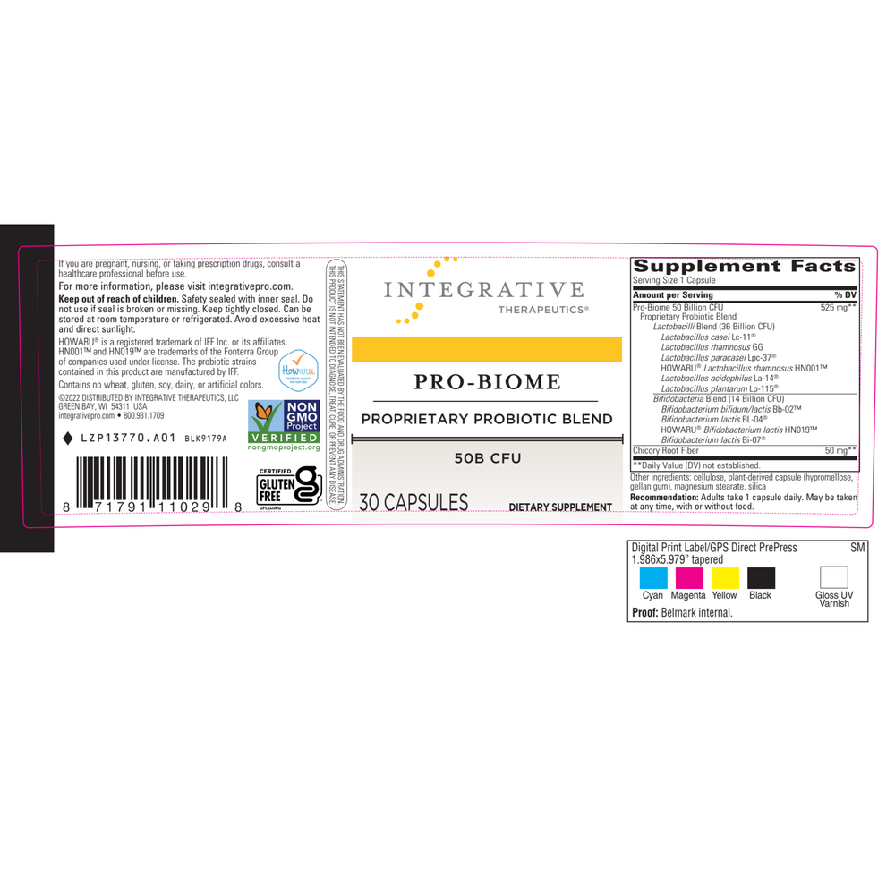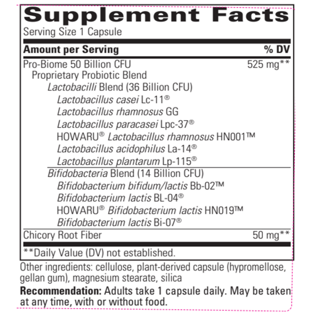 Pro-Biome 50 Billion daily probiotic contains 11 diverse probiotic strains, including clinically studied strains (HN019™, HN001™, BL-04®, Bi-07®) to support gastrointestinal health as well as immune health.* Each serving of Pro-Biome has 50 billion live probiotic cultures plus prebiotics, a food source for good bacteria.*