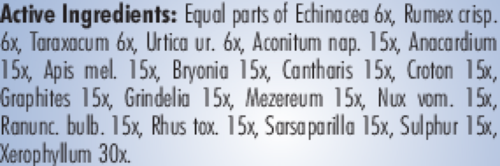Homeopathic. Formulated for symptoms associated with poison ivy, oak and sumac such as itching, burning, pain, swelling and blistering.†