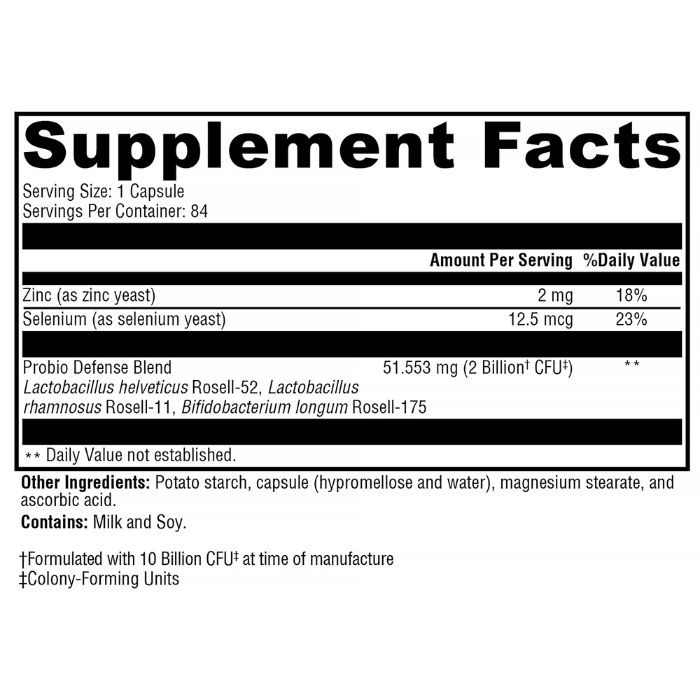 Probio Defense™ is a combination of probiotic bacteria that supports the immune and gastrointestinal systems. It is formulated with ten billion live organisms per capsule† and provides well-researched strains chosen for their ability to maintain viability throughout the small intestine. The three strains in Probio Defense are registered in the National Collection of Microorganism Cultures at the Institut Pasteur in France.*