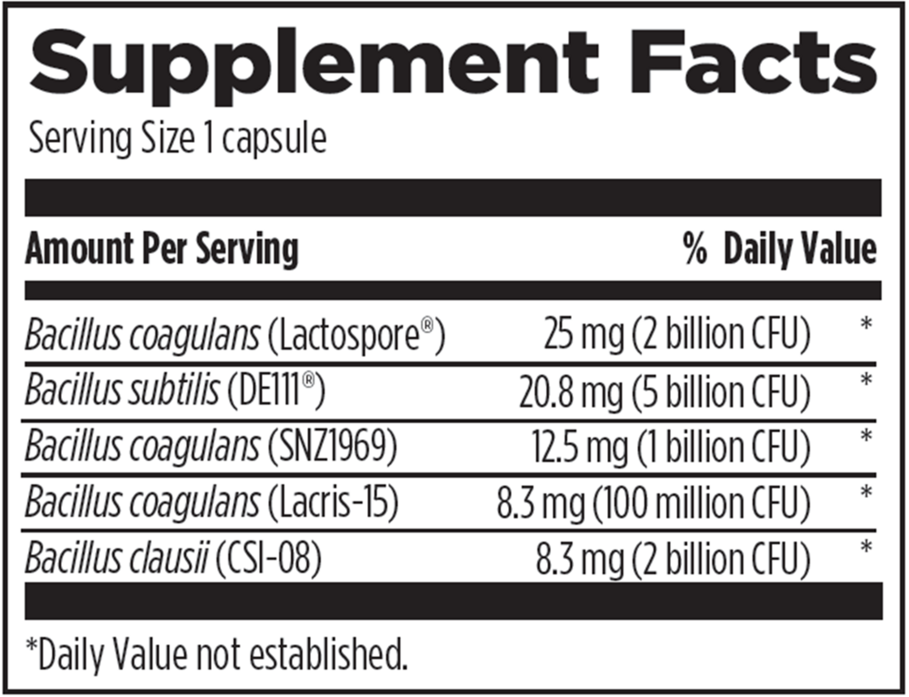 ProbioSpore™ is an industry-leading, broad spectrum, spore-based probiotic. It is comprised of a diverse combination of 5 different bacillus strains formulated to optimize gastrointestinal health Spore-based strains such as Bacillus are vital to the food chain as they have the intrinsic ability to produce a multitude of enzymes, secretory proteins, antimicrobial compounds, vitamins, and carotenoids.