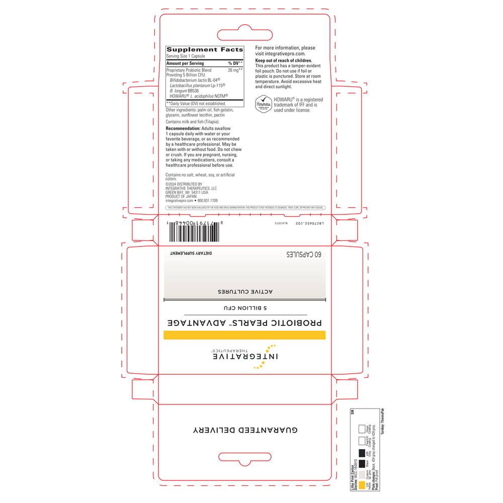 Probiotic Pearls™ ADVANTAGE promotes healthy gastrointestinal function through numerous mechanisms.* It includes a 5 billion CFU blend of lactobacilli (plantarum, acidophilus) and bifidobacterium (lactis, longum).