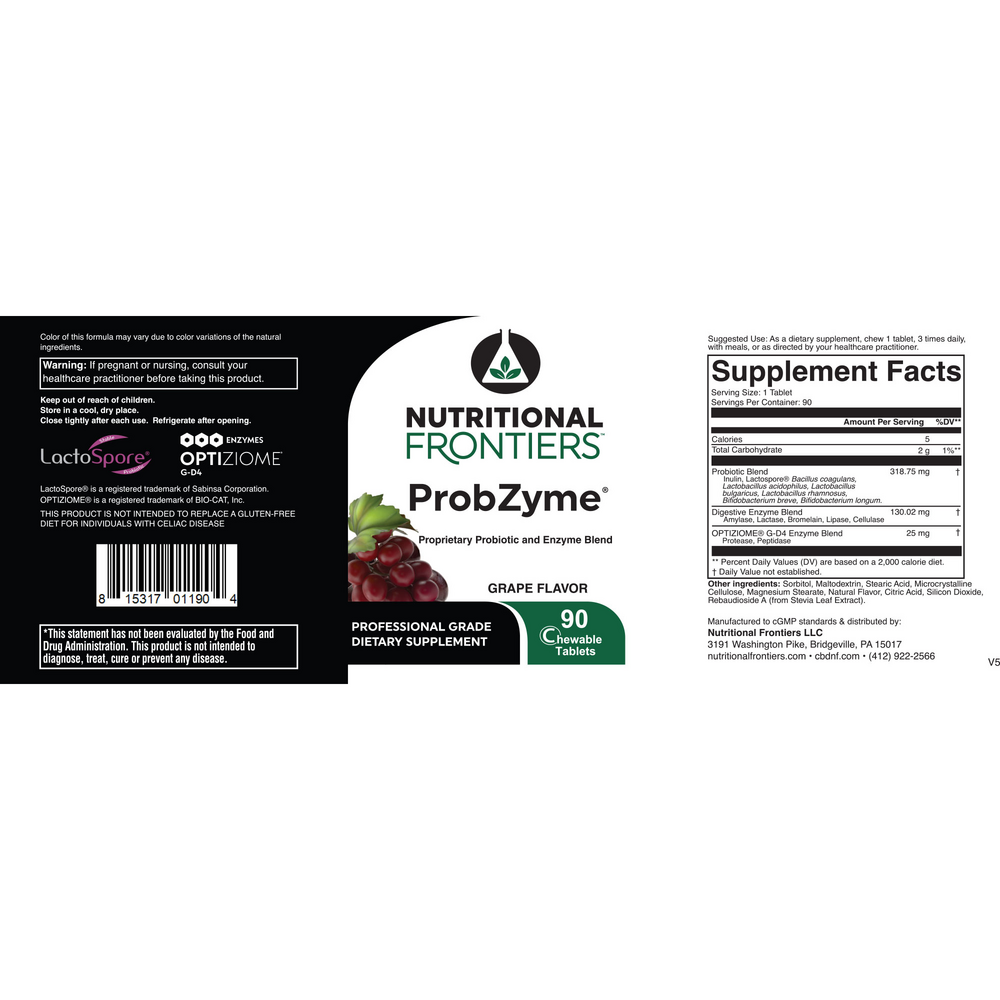 ProbZyme is a comprehensive, chewable vegetarian formulation designed to support digestive tract health and nutrient absorption in people of all ages.*