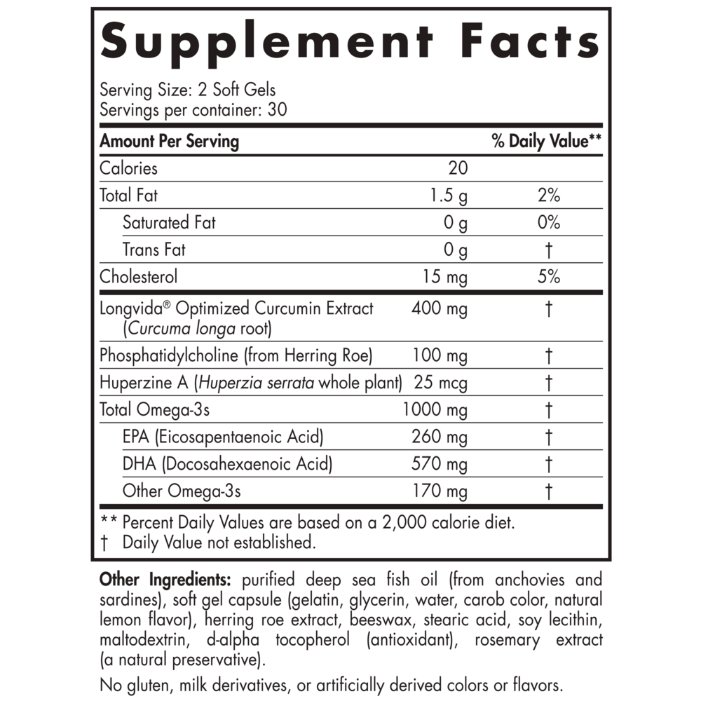 • Synergistic blend of omega-3 fish oil, curcumin, and key nutrients for brain health*