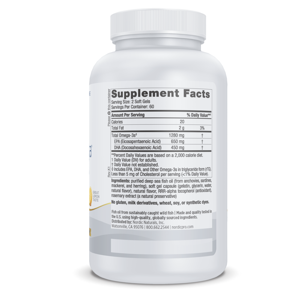 Ideal for pesco-vegetarians, ProOmega® in fish gelatin soft gels is a double strength EPA+DHA formula for more omega-3 benefits in fewer servings. For high intensity, therapeutic support for both body and mind, ProOmega is an excellent choice, containing 1100 mg EPA+DHA per serving.