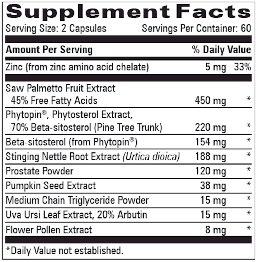 This comprehensive formula combines saw palmetto extract with prostate concentrate and other nutrients and herbs needed for support of prostate and lower urinary tract health.*