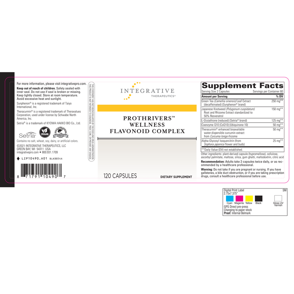 ProThrivers Wellness Flavonoid Complex features a unique combination of herbs and nutrients intended to support antioxidation.* This formula relies upon the combination of ingredients versus the use of single or sequential compounds.
