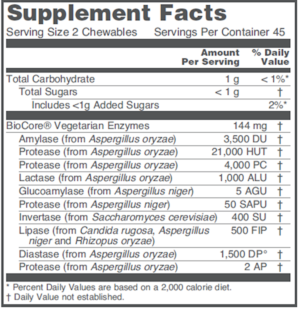 ProtoZymes™ is a broad spectrum digestive enzyme formulation designed to support optimal breakdown and absorption of proteins, fats, and carbohydrates, including lactose, to ensure maximum nutritional value for you and your children.* ProtoZymes™ has been designed especially for children, but it can also be used by adults to enhance bioaccessibility of nutrients consumed in foods.*