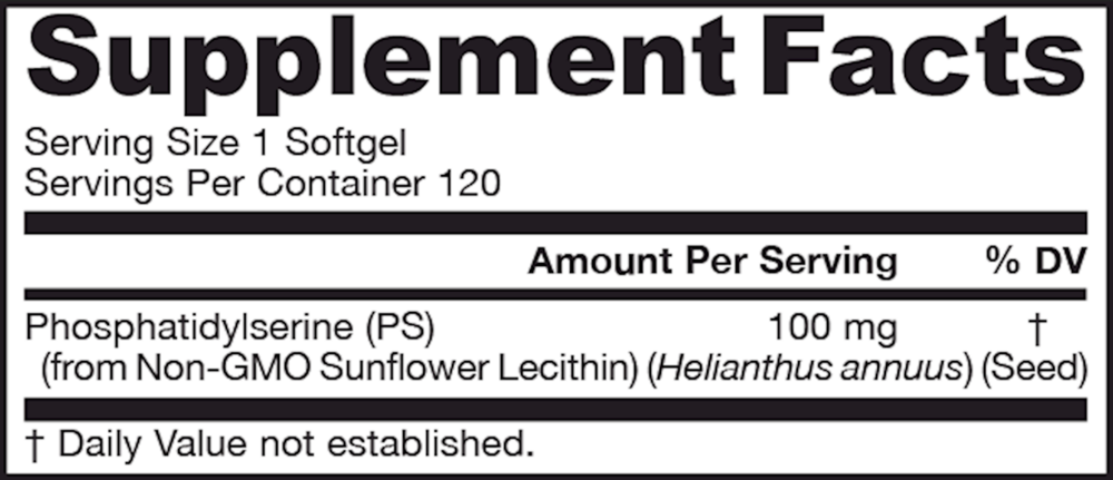 "Phosphatidylserine (PS) is a natural phospholipid that is a structural component of cell membranes.* It is an important phospholipid present in the brain and supports brain health.* Jarrow Formulas® PS100, featuring Sharp-PS®, utilizes a concentrated form of phosphatidylserine from sunflower lecithin (soy-free) that offers excellent stability.*"