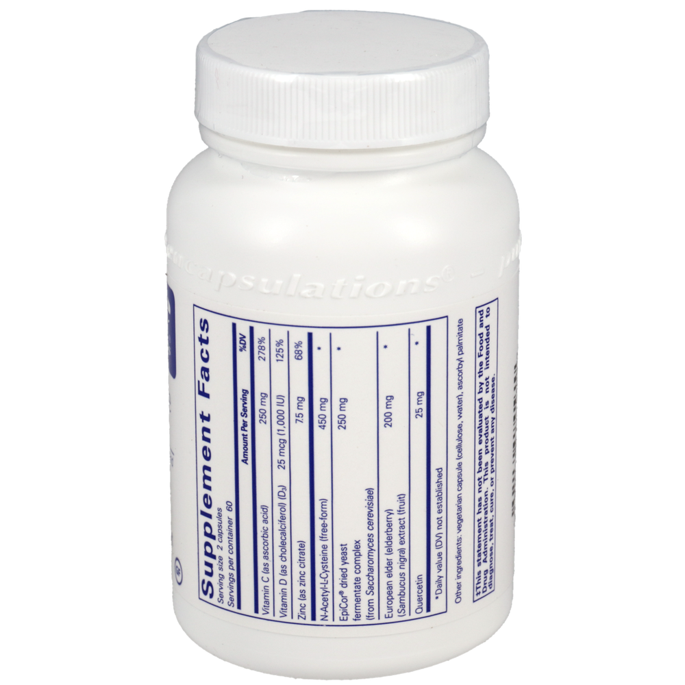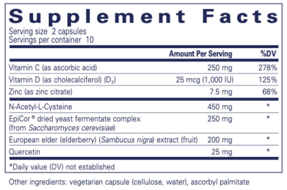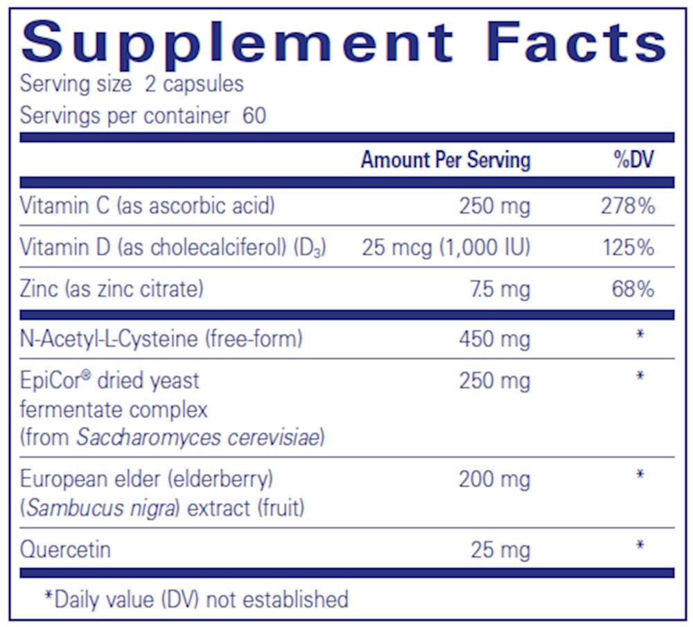 A separate open label, in-house trial indicated a strong potential for EpiCorĀ® supplementation to enhance secretory IgA levels after 30 days. These various actions demonstrate the ability of EpiCorĀ® to address both innate and adaptive immune responses. NAC (n-acetyl-l-cysteine) promotes endogenous glutathione production for antioxidant protection and provides lung defense mechanisms for healthy respiratory function. In a randomized double-blind trial involving mostly older individuals, NAC showed support for respiratory health. Quercetin and elderberry provide flavonoids that offer additional support for immune and respiratory function while vitamin C, vitamin D and zinc play important roles in immune cell activation.*
