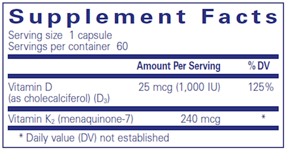 Offers vitamin K2 (MK-7) to help maintain healthy vascular calcium homeostasis to support cardiovascular function*