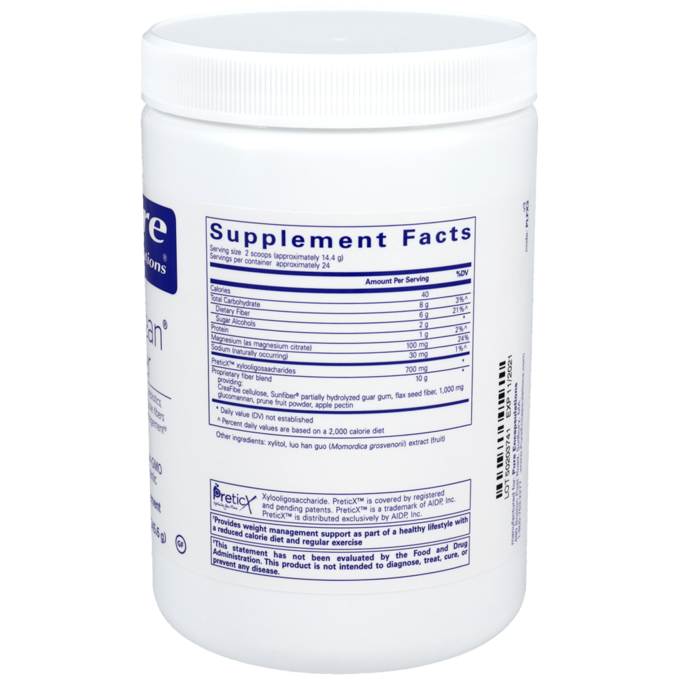 The gut microflora is now recognized as an important factor in overall health, with potential roles ranging from cellular and immune health to metabolic function and weight management. Studies indicate that obese individuals possess lower levels of Bacteroidetes microorganisms and higher levels of Firmicutes bacteria in the GI tract compared to lean individuals. In one study, germ-free mice inoculated with bacteria from obese mice showed increased Firmicutes bacteria and an increase in body fat over two weeks despite no change in dietary intake, compared to mice inoculated with bacteria from lean mice. In a double-blind, randomized, placebo-controlled study, 32 healthy adult subjects were given 1.4 grams or 2.8 grams of PreticX™ XOS for eight weeks. The Bifidobacterium count increased 21% from the baseline at four weeks and 17% from the baseline at eight weeks in the highest dose group. B. fragilis levels (a Bacteroidetes organism) were also found to increase. Similar results were found in another study involving healthy young women, which also showed PreticX supplementation resulted in an increase in fecal triglyceride and cholesterol concentrations. In contrast to many common prebiotics, these studies reported no gas, bloating or other intestinal side effects. Each serving of PureLean® Fiber provides 0.7 grams PreticX XOS and a minimum of 6 grams fiber, typically providing 3.5 grams soluble fiber from glucomannan, guar gum, apple pectin and prune fiber, and 3 grams insoluble fiber from flax seed and cellulose. Soluble fiber helps slow the rate of digestion, promoting satiety, digestive health, nutrient absorption and healthy glycemic control. It enhances satiety by absorbing water and adding bulk in the digestive tract. Research has revealed that the high molecular weight and viscosity of glucomannan is particularly supportive. Each serving of PureLean® Fiber contains 1 gram of glucomannan. Several randomized controlled trials indicate that glucomannan supports healthy weight managementϯ and lipid metabolism, and supports healthy glycemic control.*