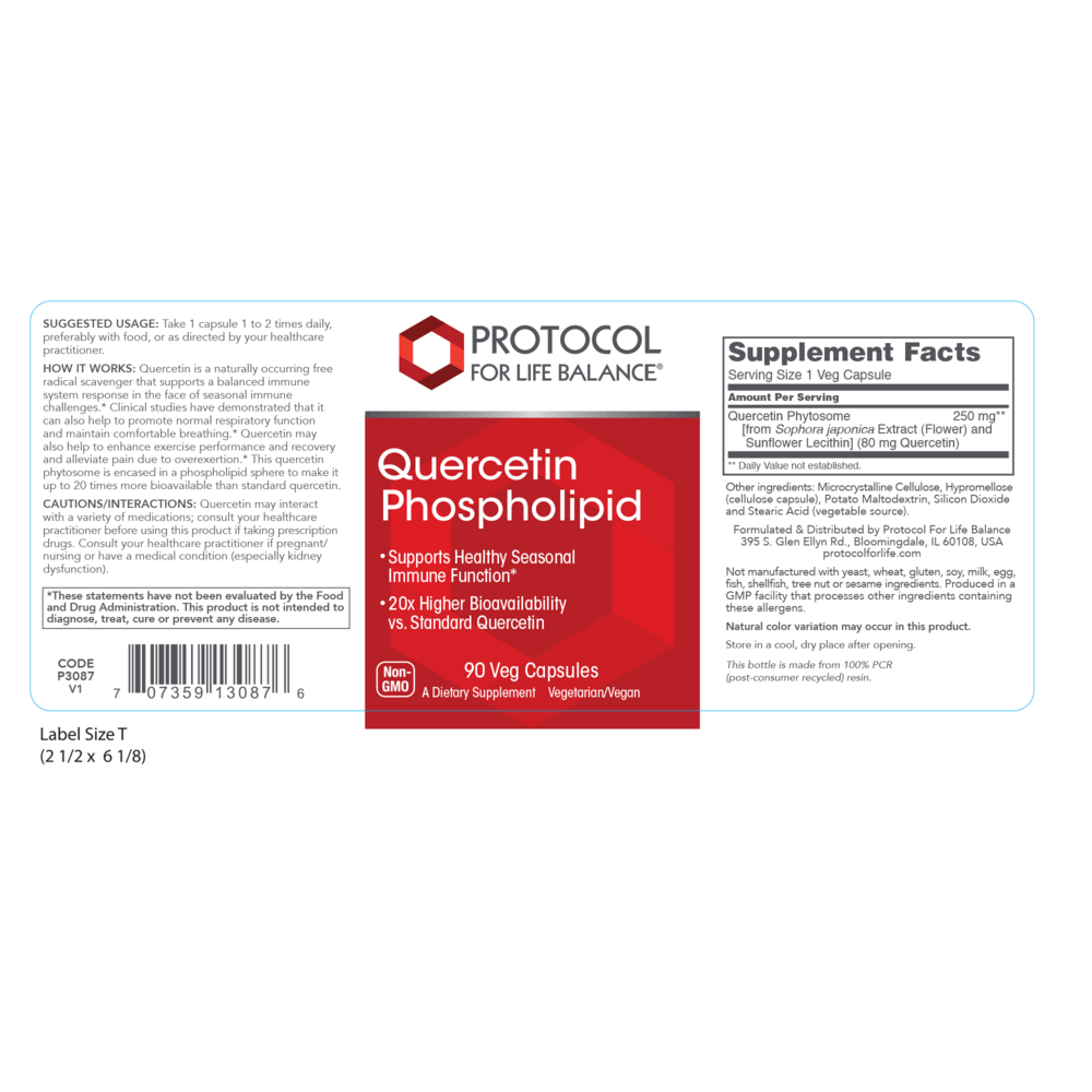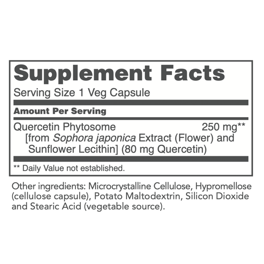 Quercetin is a naturally occurring free radical scavenger that supports a balanced immune system response in the face of seasonal immune challenges.* Clinical studies have demonstrated that it can also help to promote normal respiratory function and maintain comfortable breathing.* Quercetin may also help to enhance exercise performance and recovery and alleviate pain due to overexertion.* This quercetin phytosome is encased in a phospholipid sphere to make it up to 20 times more bioavailable than standard quercetin.