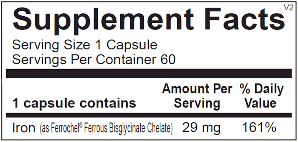 Reacted Iron provides 29 mg of elemental iron per serving, ideally formulated using the amino acid chelate form of iron (ferrous bisglycinate) for enhanced absorption, optimal utilization and gastrointestinal (GI) comfort. Some individuals, who take other forms of iron supplements, may experience GI side effects, including gas, bloating, constipation or a combination of these symptoms. Supplementing the right form of iron can be key to maintaining healthy levels within the body and compliance to a supplement regimen.
