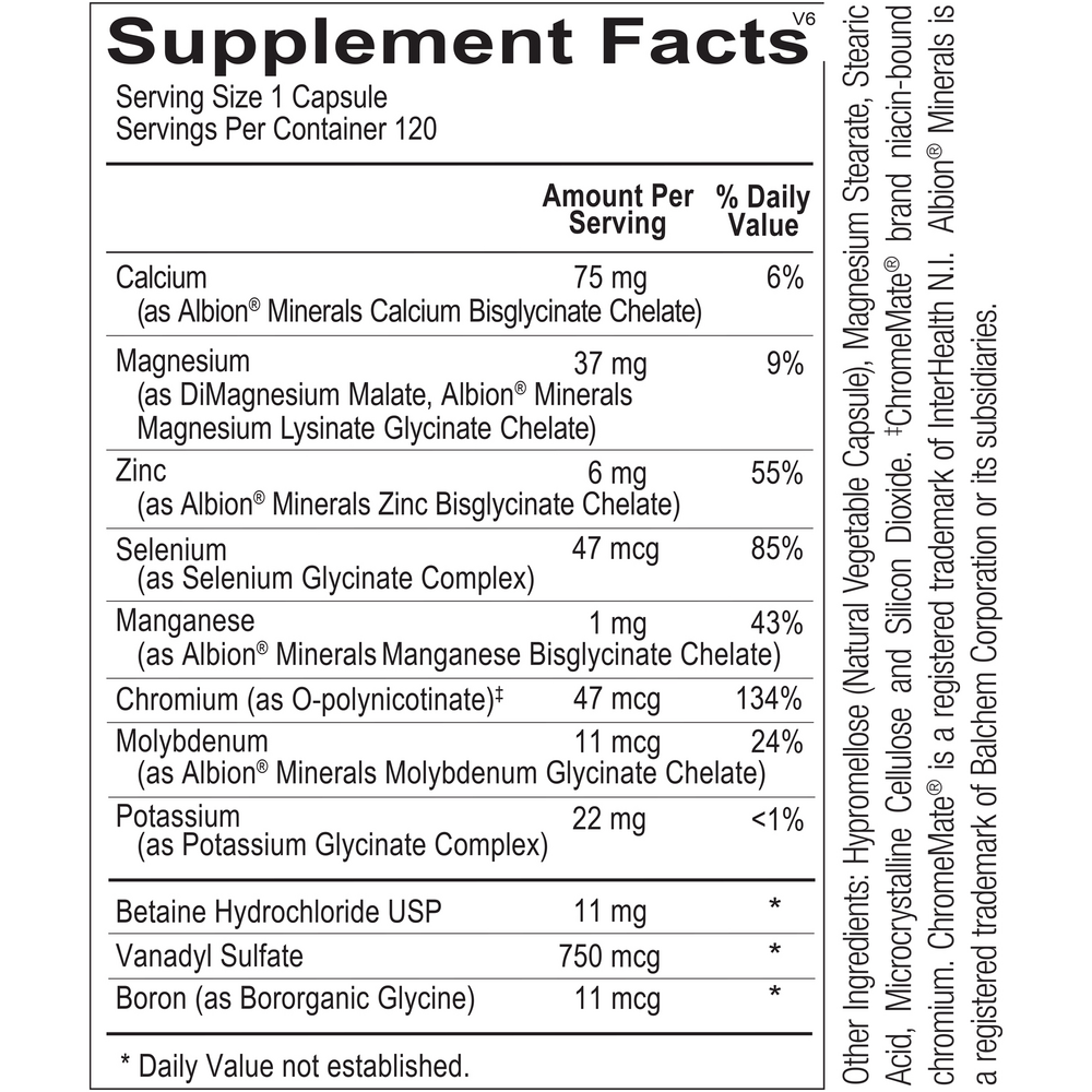 Reacted MultiMin includes broad-spectrum mineral support for a variety of protocols.