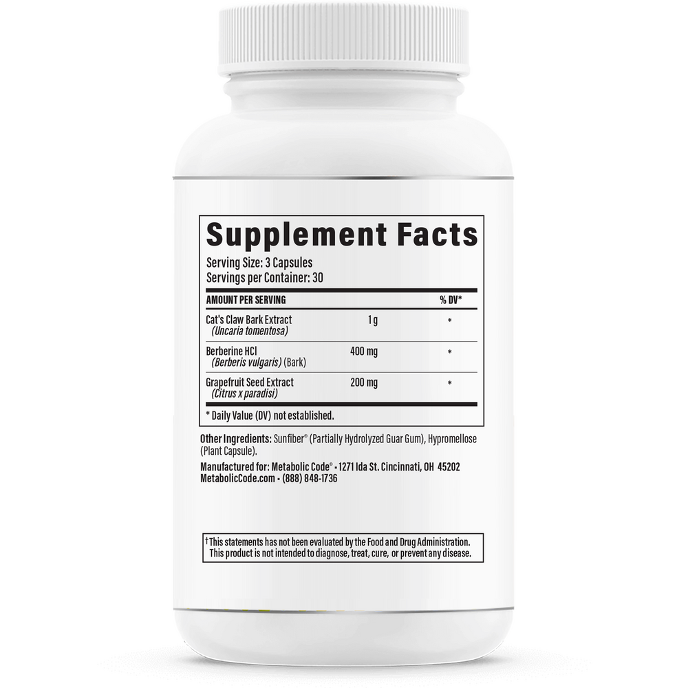 Re-Biosis contains botanical extracts and nutraceuticals that are designed to that help balance the microflora of the gastrointestinal tract as well as targets restoring the tight junctions of the gastrointestinal barrier. This leads to reduced gut permeability, improved immunity and decreased inflammation signaling due to changes in the microbiome. Re-Biosis contains the antimicrobial and GUT mucosal supportive phytochemical berberine (std. to 97%), immune supportive and GUT mucosal supportive Cat's claw (Uncaria tomentosa) bark (std. to 3% alkaloids) and antimicrobial grapefruit seed extract. Supports TRIAD 2 GUT issues.