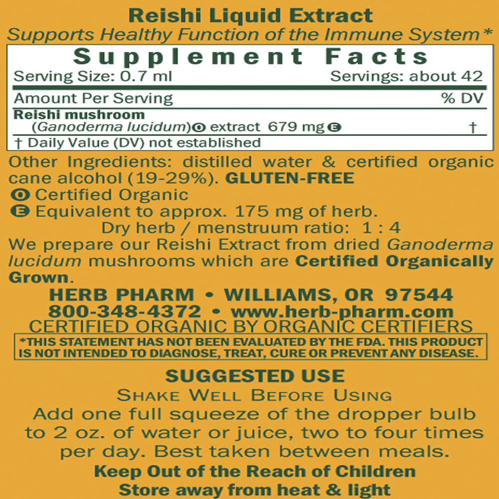 Herb Pharm prepares their Reishi extract from dried whole fruiting body (not mycelium) of Certified Organic Ganoderma lingzhi mushrooms. Their Reishi is grown on wood logs and/or wood chips. It is never grown on grains like rice.