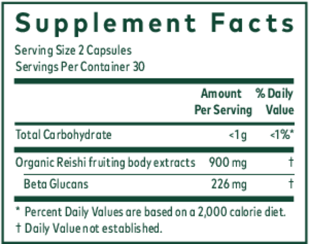 Each two capsules = 5,000 mg dried Reishi mushroom