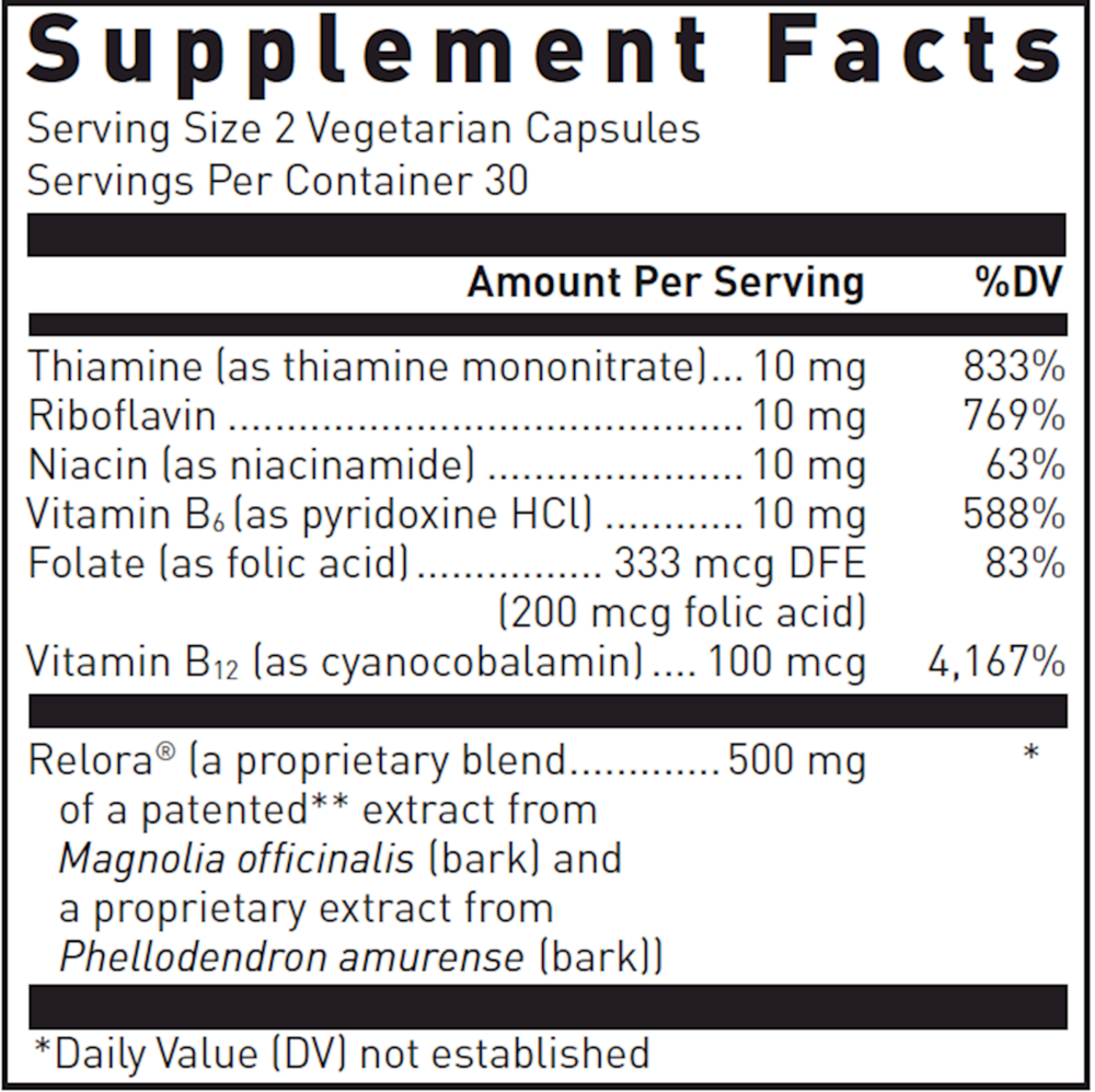 Relora®-Plex is a unique proprietary blend that combines two herbal extracts, Magnolia and Phellodendron, with B-vitamins to support normal mental functioning during stress. Relora® was shown in published clinical studies to support normal salivary cortisol levels, stress, mood and weight management.*