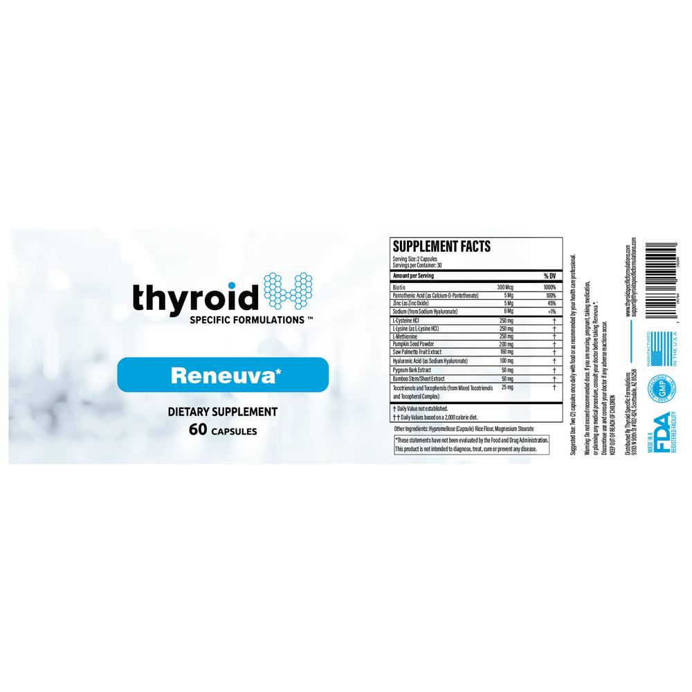 Reneuva is a cutting-edge nutraceutical designed to address the root causes of thyroid-related hair loss, thinning, and slow regrowth.* Featuring a clinically researched blend of botanicals, vitamins, minerals, and amino acids, Reneuva strengthens hair, minimizes shedding, and restores its natural vitality.*