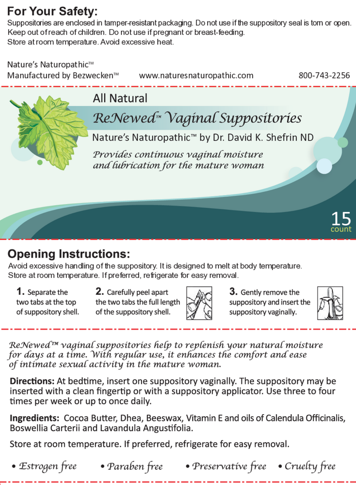 Renewed Vaginal Suppositories help to replenish your natural moisture for days at a time. With regular use, it enhances the comfort and ease of intimate sexual activity in the mature woman.