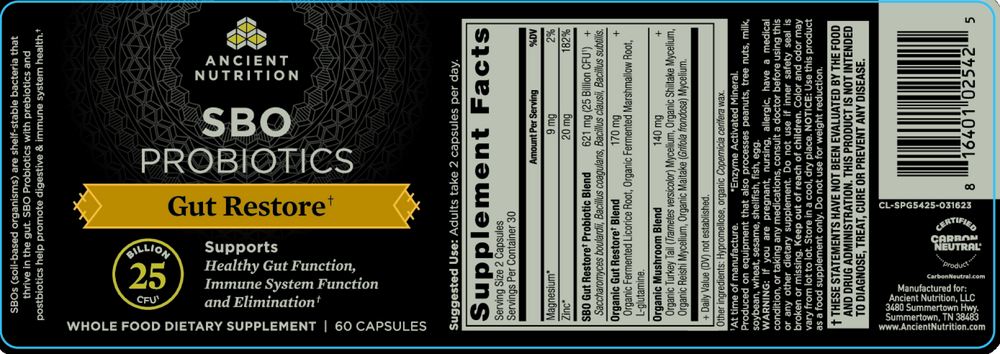 Ancient Nutrition’s SBO Gut Health Probiotics bring together a combination of soil-based probiotic strains and an organic fermented blend of superfoods formulated specifically to support gut health.