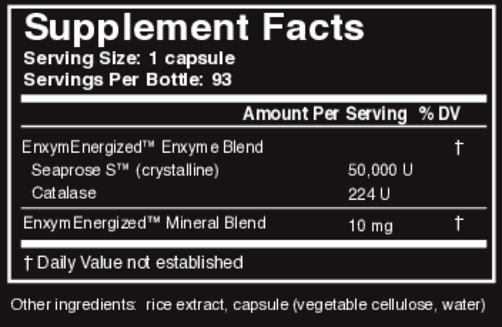 Seaxym™ DR is a pure source of Seaprose STM (crystalline), a systemic enzyme that accelerates and supports healthy respiratory and sinus function.*