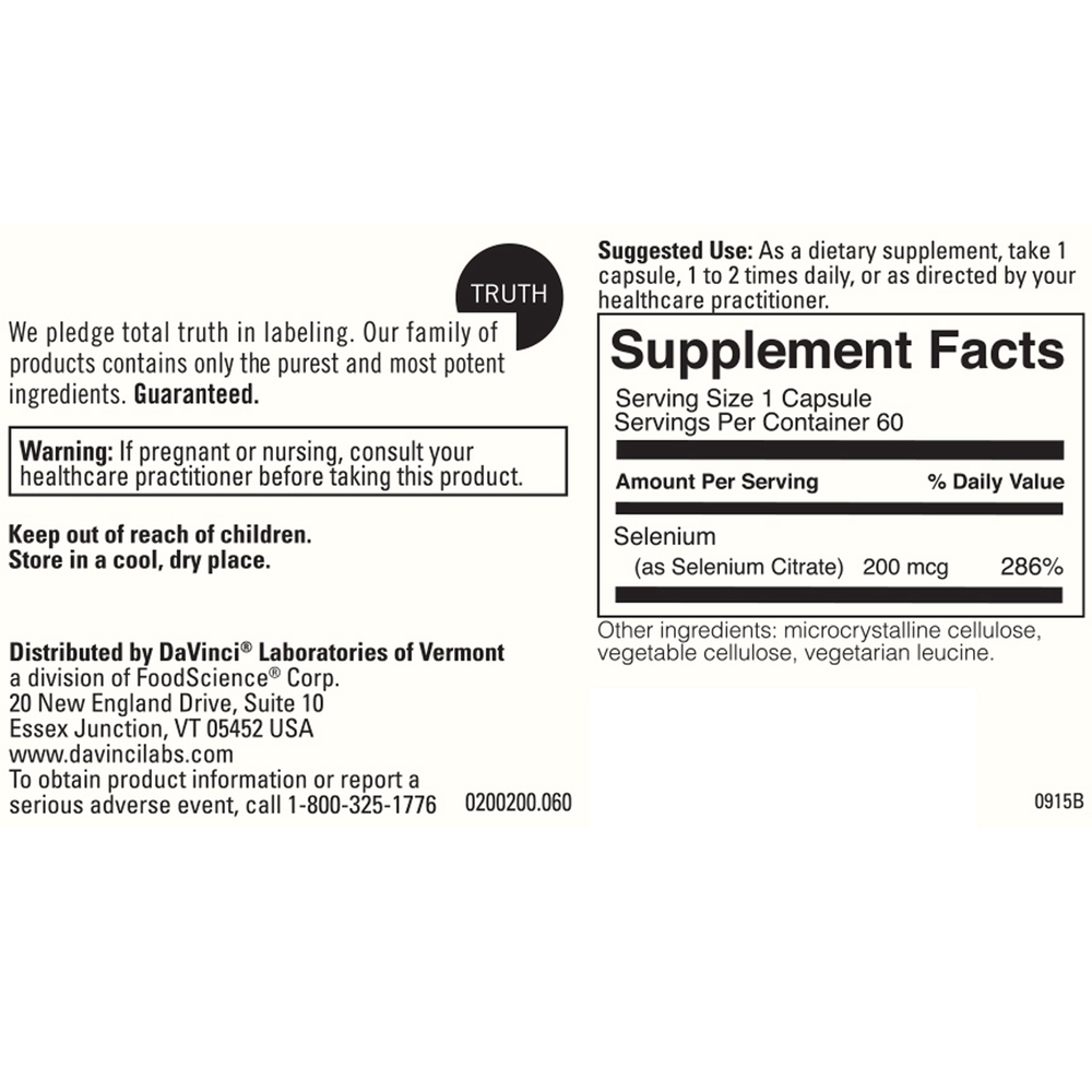 A dietary supplement to support the immune system and cardiovascular function.* As an antioxidant, selenium functions to inhibit the oxidation of fats and is an essential component of Glutathione peroxidase.
