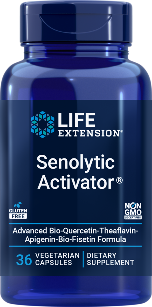 Senolytic Activator® combines black tea theaflavins, the plant-derived flavonoid apigenin, and ultra-absorbable forms of the bio-flavonoids quercetin and fisetin to help manage senescent cell burden and promote systemic rejuvenation.