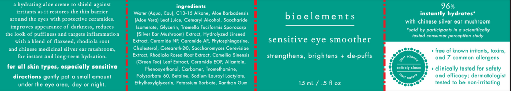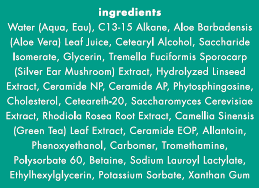 A hydrating aloe creme to shield against irritants as it restores the thin barrier around the eyes with protective ceramides. Improves appearance of darkness, reduces the look of puffiness and targets inflammation with a blend of flaxseed, rhodiola root and chinese medicinal silver ear mushroom, for instant and long-term hydration.