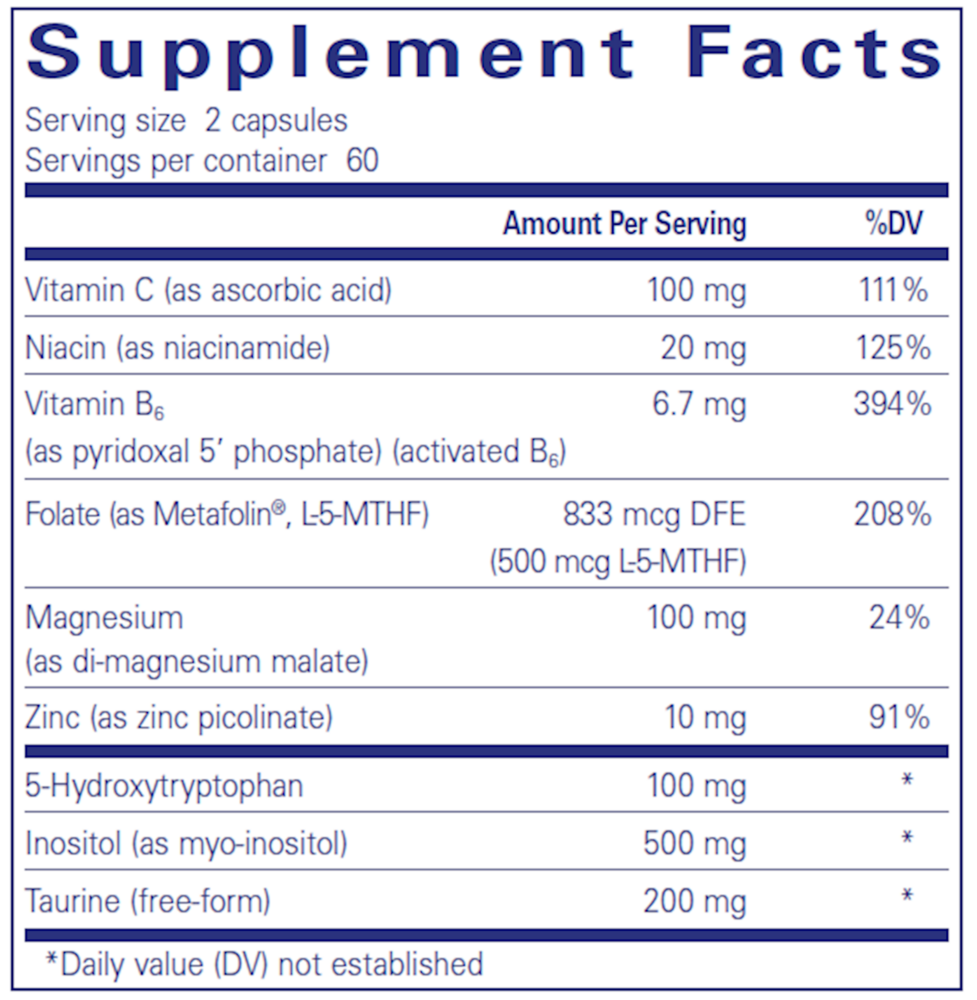 • Includes the co-factors magnesium, vitamin C, vitamin B6, and Metafolin® L-5-MTHF to support serotonin production and positive mood*