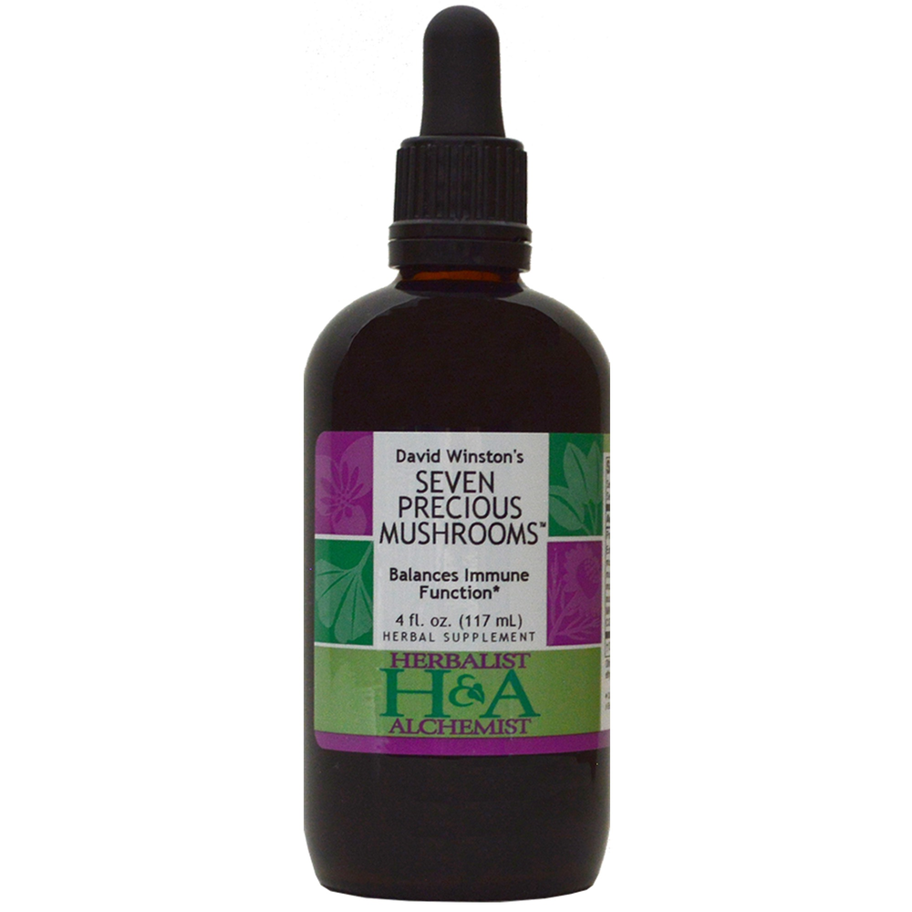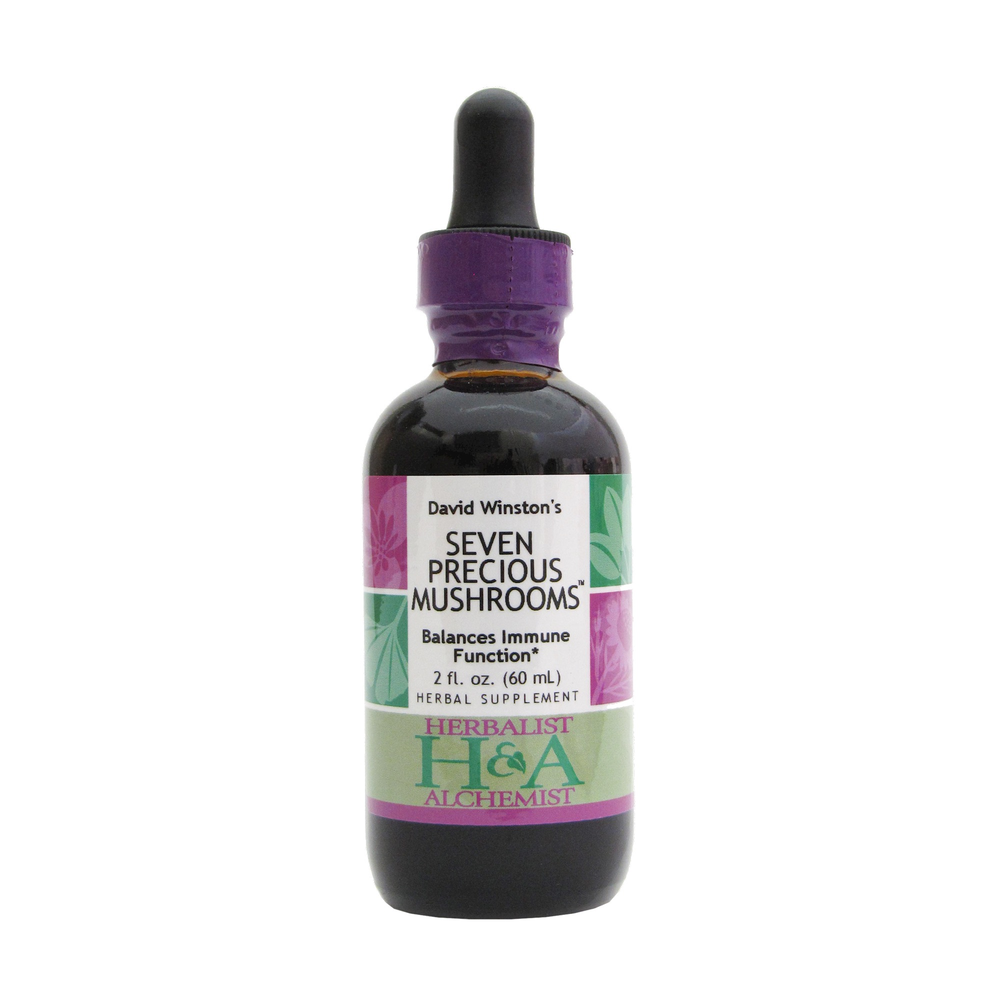 Herbalist & Alchemist blends David Winston’s Seven Precious Mushrooms™ from extracts of Black Reishi mushroom (Ganoderma sinensis), Red Reishi mushroom (Ganoderma lucidum), Chaga mushroom (Inonotus obliquus), Shiitake mushroom (Lentinula edodes), Reishi mycelium (Ganoderma lucidum), Maitake mushroom (Grifola frondosa), and Cordyceps mycelium and/or mushroom (Cordyceps sp.). The organically grown or ecologically harvested botanicals are extracted separately into Certified Organic, USP Pharmaceutical Grade Alcohol before blending.