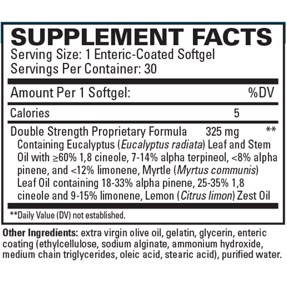 Sinutol Extra Strength provides the soothing power of eucalyptus, myrtle, and lemon to support sinus and bronchial health. Sinutol Extra Strength supports healthy sinus cilia activity. This unique enteric-coated softgel is gentle for those with gastrointestinal sensitivities or those who need a high potency formula.*