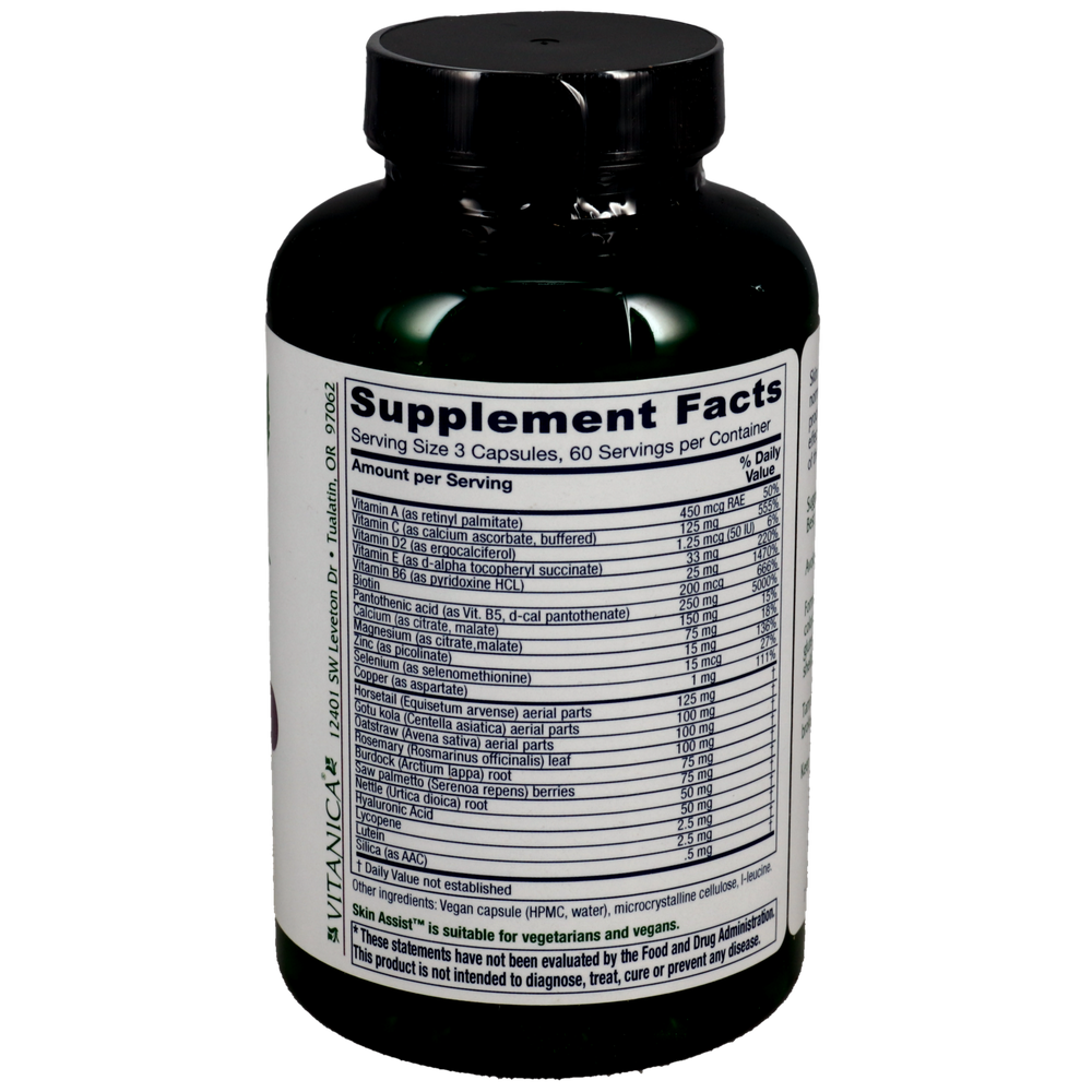 Skin Assist offers focused skin support by promoting healthy and glowing skin; promotes balanced hormonal effects on the sebaceous glands and physiological functions of the skin.*
