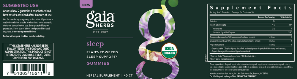 While stressed, you may experience occasional sleeplessness.* Gaia Herbs' Certified Organic Sleep Gummies combine Ashwagandha, an adaptogen revered for its ability to help the body’s resistance to stress, and Passionflower, traditionally used to support a sense of calm and relaxation, to promote a good night’s rest—with benefits that build over time.* They’re convenient and delicious, made without any artificial colors, preservatives, flavors, or sweeteners, for 100% plant-powered support that works with your healthy lifestyle.*